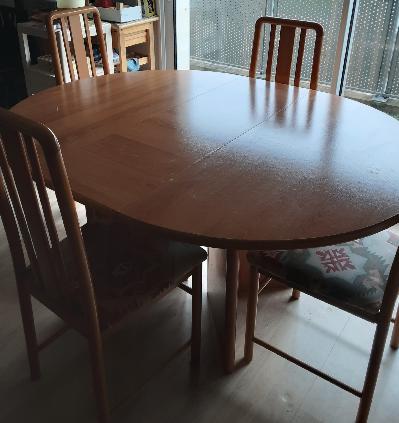 Prix : 50 EUROS vends une table ronde et ovale avec sa rallonge plus 4 chaises