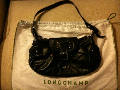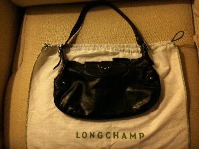 Prix : 150 EUROS Sac en cuir de vachette noir, marque Longchamp (authentique) ; dimensions : 35x 18,5. Compartiment principal à fermeture zippée, fermeture aimantée avec une boucle en laiton et une poche intérieure zippée. Poignée réglable.
