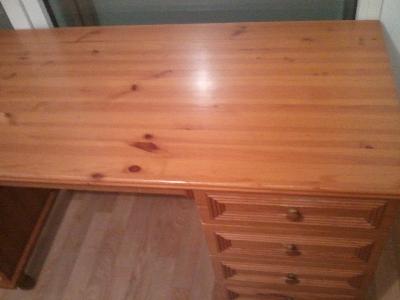 Prix : 100 EUROS Bureau en bois plein, provenant de Russie, avec 3 tiroirs.