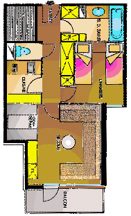 4 étage 1 pièce(s) , dont 1 chambre(s),Coin cuisine, Salon, 1 salle d’eau, 1 WC indépendant, Balcon