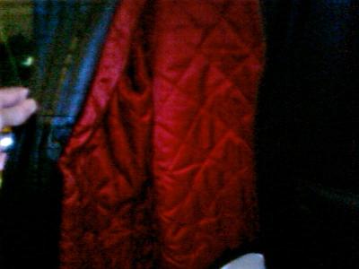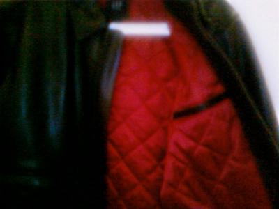 Prix : 50 EUROS Blouson GAP en cuir noir, doublure matelassée rouge. Taille 46/48.