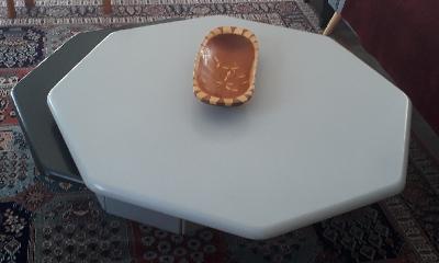 Prix : 75 EUROS A vendre table basse grise de forme octogonale à double plateau tournant