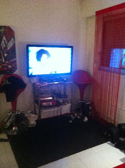 Donné avec le lot : Miroir + 1 étagère vernis rouge neuve encore dans l'emballage + 2 néons rouge + porte bougies + 2 grands tableaux New York + 4 petits tableux New Nork + lampe rouge et noir + petit tapis + rideaux...