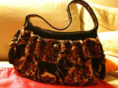Sac à main, orné d'un tapis fait main qui recouvre le cuir, fermeture principale zippée. Dimensions : 28 x 18