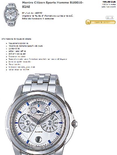 Vend Montre Homme CITIZEN Eco-Drive BU 0010-82AE